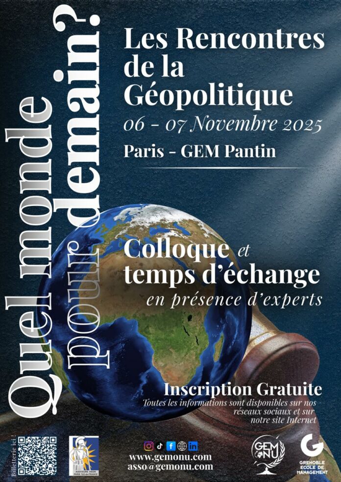 Nous avons le plaisir de vous inviter aux Rencontres de la Géopolitique organisées par GEM ONU association des étudiants en géopolitique de Grenoble École de Management, en partenariat avec notre association des auditeurs de l’IHEDN région Paris Île-de-France.